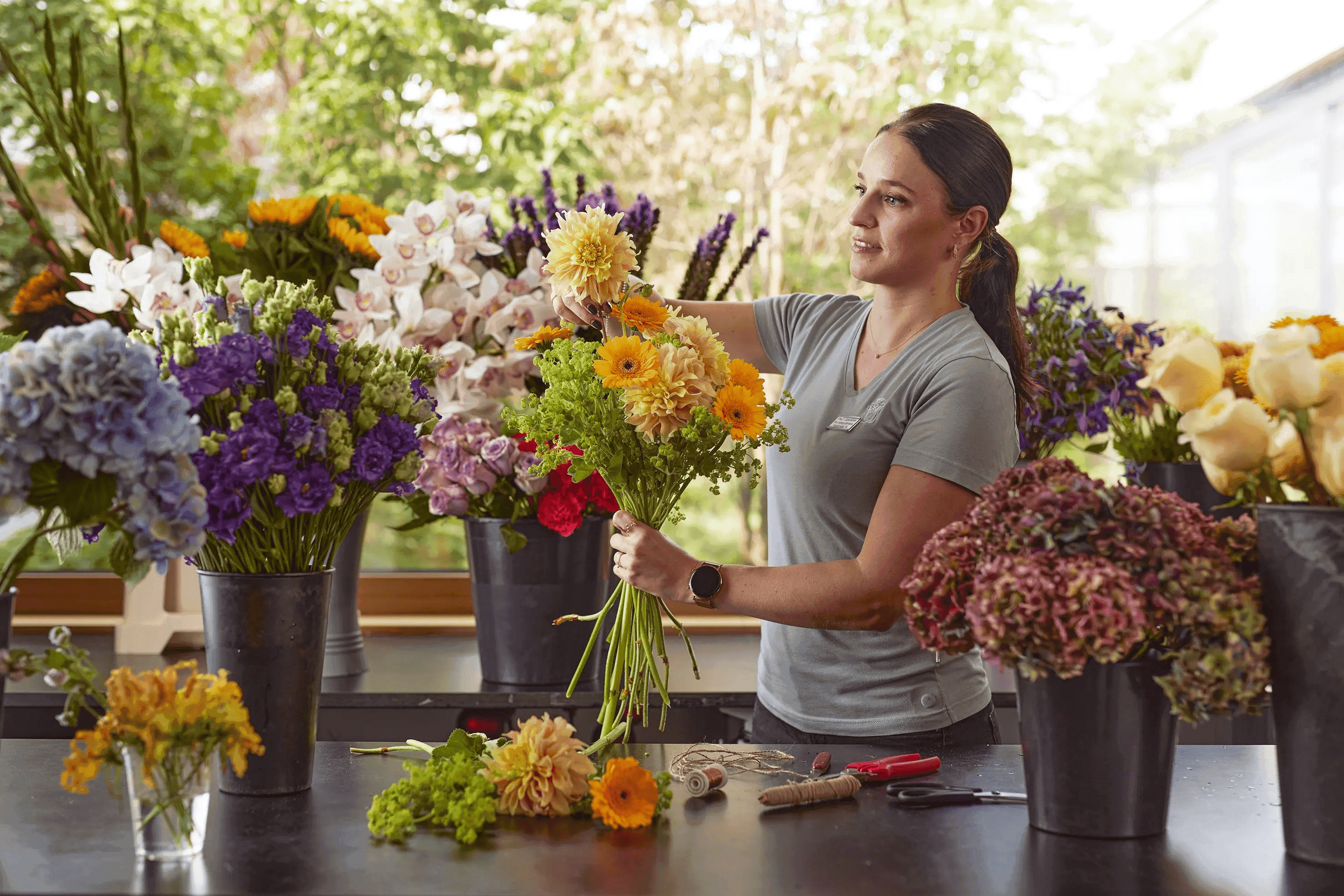 Since September 2022, the floristry department has been centrally located in the extension building. Through our large display windows, you can watch us at work at any time.